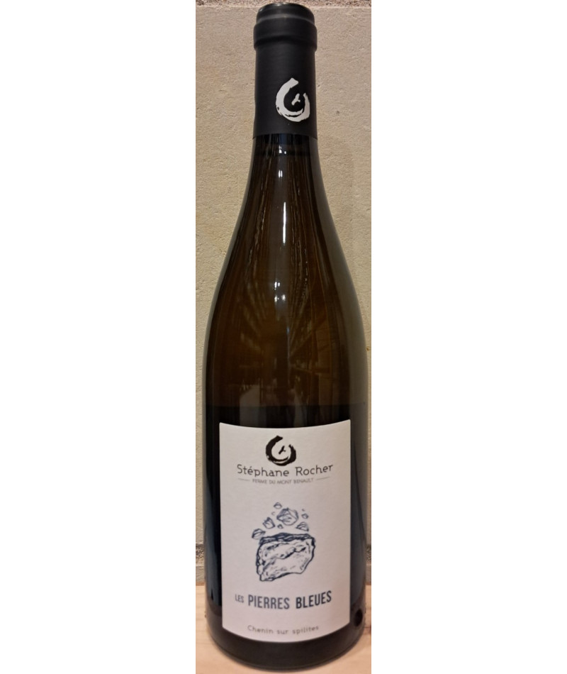 Cette cuvée "Les Pierres Bleues" est issu de vieilles vignes de chenin âgées d'environ 70 ans et cultivées selon les principes de l'agriculture biologique sur un terroir volcanique de spilites. Les vendanges sont manuelles et les fermentations se font grâce aux levures indigènes. La vinification est douce et sans intrants; l'élevage, sur lies fines, se fait en jarres de grès et en cuves.